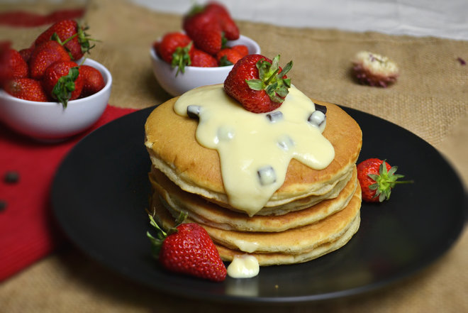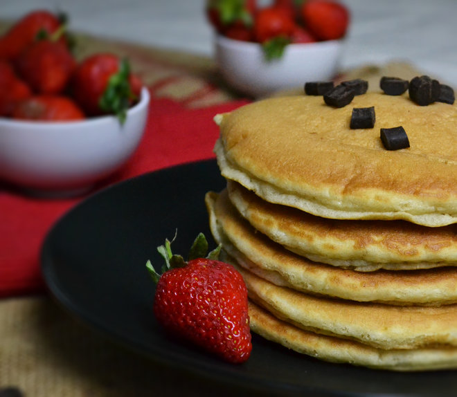 Stamattina, non corriamo. Facciamo colazione in tranquillità, come quando eravamo bambini. E’ domenica e ho aperto gli occhi molto presto e con il Sole tra i capelli, Francesco è ancora nel suo involucro di sogni. Allora prendo una padella, fragole, crema e gocce di cioccolato, amore ed empatia: gli ingredienti per un dolce risveglio. Amo fare colazione con i pancakes soffici e ancora caldi, accompagnati con frutta e una cascata di sciroppo d’acero o crema. Una ricetta semplice e veloce, che riesce davvero a migliorare la giornata. A volte, sottovalutiamo il potere del cibo e dei sapori sani, capaci di trasmetterci la giusta positività quotidiana.