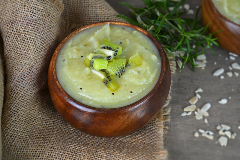 In questo caso, in una calda zuppa che unisce il sapore acidulo e rinfrescante del frutto a quello delicato e dolce del tubero, donando un senso di leggerezza e un retrogusto particolare. Il kiwi, inoltre, è un alimento ricco di proprietà: può contrastare l’asma, facilita la digestione, è ricco di vitamina C e quindi utile per il rafforzamento del sistema immunitario, è un buon alleato per la bellezza della pelle e abbassa il colesterolo.
