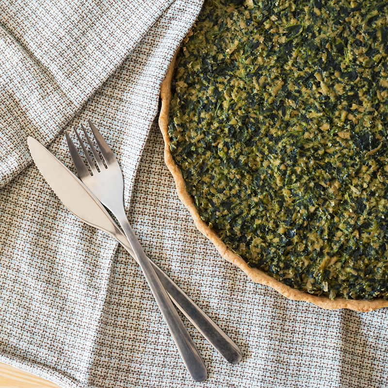 Homemade shortcrust pastry quiche with tofu and spinach