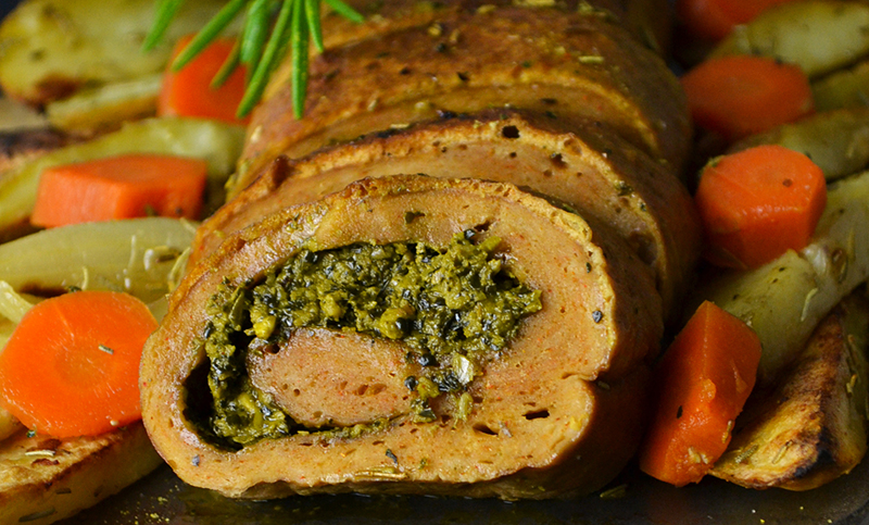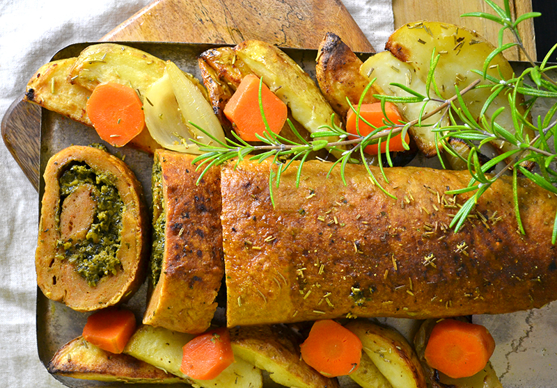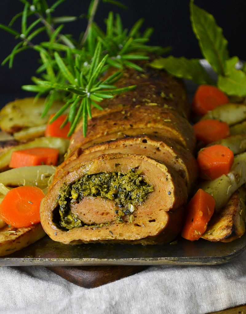 È una di quelle ricette che rendono l’atmosfera invitante ed accogliente grazie al loro profumo intenso, ma oltre a questo, l’arrosto di seitan è anche un piatto ricco di benefici: il seitan è povero di grassi e ricco di proteine; il cavolo ha proprietà antiossidanti e contiene vitamina C, in grado di rafforzare il nostro sistema immunitario; gli spinaci proteggono la salute degli occhi e aiutano a ridurre la pressione sanguigna, contrastando i problemi al cuore; i funghi hanno proprietà antibatteriche e sono una fonte di ferro, utile contro l’anemia.