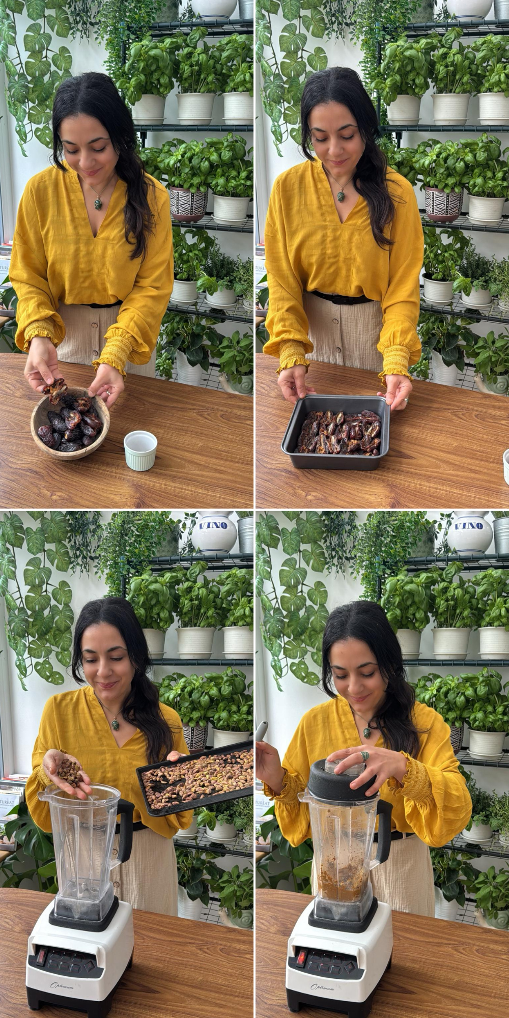 6. Spalmo il burro di pistacchi sui datteri creando il secondo strato.