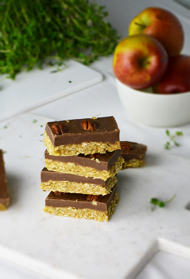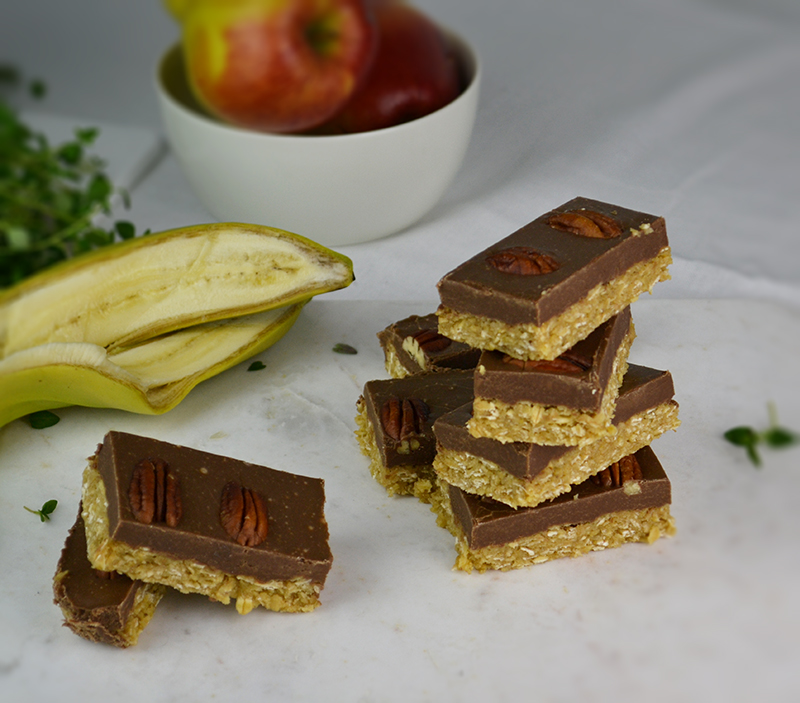 Queste barrette vegan sono realizzate con un ingrediente che amo particolarmente per il suo sapore dolce e i numerosi benefici: i datteri, che hanno proprietà energizzanti e fanno bene alla mente, quindi sono perfetti per donare energia alle nostre giornate. Questa ricetta è la migliore alleata che ho nei momenti improvvisi di fame, quando non ho tempo di fermarmi a preparare e preferisco evitare il cibo confezionato: barrette con datteri, banane, avena, noci e uno strato di cioccolato, tutti ingredienti sani e semplici, per uno spuntino dolce, facile e veloce da realizzare.