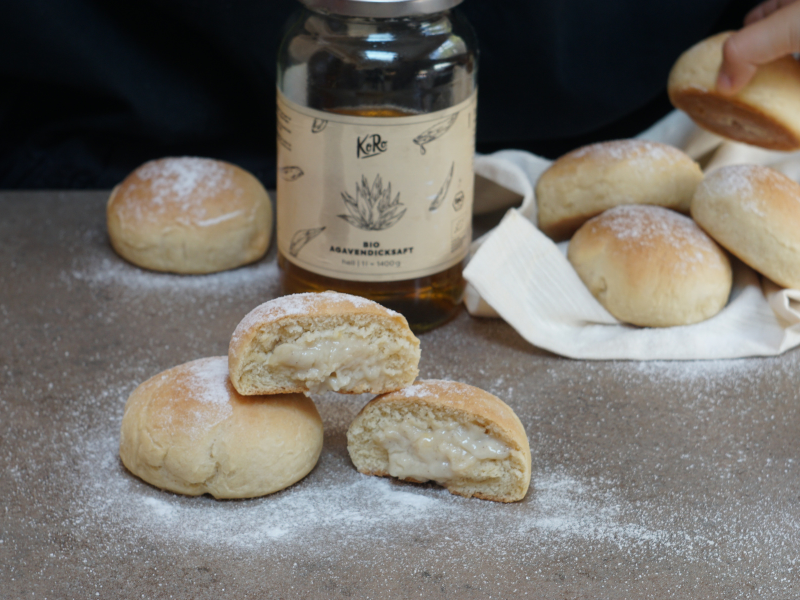 Un soffice impasto cotto al forno, ripieno di golosissima crema pasticcera vegetale e senza l’utilizzo di zuccheri raffinati per rendere il risultato più leggero, ma comunque irresistibile. Questi bomboloni sono perfetti per una merenda o una colazione speciale, da realizzare per qualcuno di importante o semplicemente da preparare per noi stessi, perché avere un po’ di dolcezza nella nostra quotidianità è fondamentale per essere sereni!