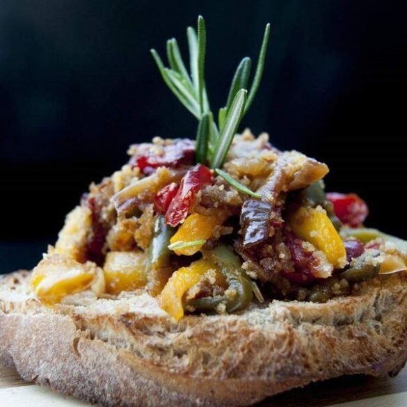 Il pane nella mia famiglia non veniva mai buttato e quello più duro si trasformava subito in deliziose bruschette come queste, capaci di diventare lo spuntino vegan più inaspettato ma gustoso del mondo. La ricetta di mia nonna prevede principalmente l’utilizzo di melanzane e peperoni ed io ho sempre seguito le sue guide, così oggi ve la propongo.