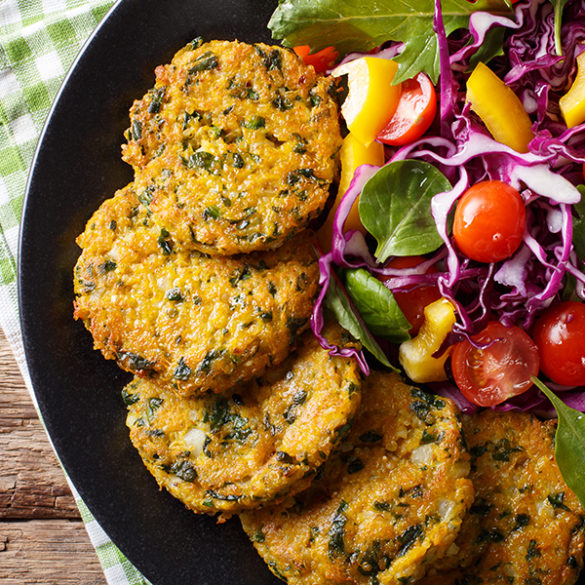 - Dopo, forma circa 20 burger con le mani. In una padella scalda un filo d’olio e cuoci le polpette per pochi minuti, fino a quando la superficie non si sarà dorata.