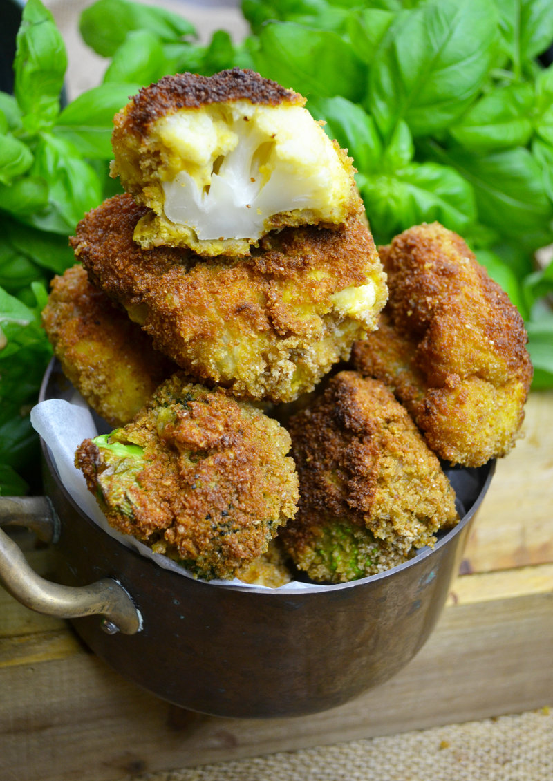 Un semplice frutto sarebbe perfetto ma, se preferite qualcosa di più sfizioso, vi consiglio la ricetta di oggi: cime di broccoli e cavolfiore, immerse in una densa pastella di farina di ceci, ricoperte di pan grattato e cotte in padella con un filo d’olio, che le rende croccanti in superficie e tenere all’interno.