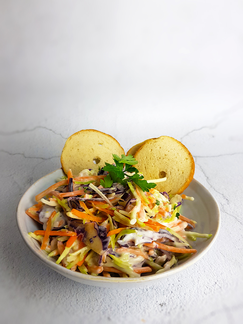 Nella semplicità di ricette buonissime come la Coleslaw sono sicuramente i dettagli a fare la differenza, accorgimenti che rendono il piatto irresistibile e indimenticabile. Sono le piccole cose, infatti, a rendere una giornata speciale: un abbraccio al mattino, le fusa di Noir dopo ore di lavoro, avere il tempo di fare una lunga passeggiata in un parco o fare uno spuntino con la coleslaw in versione vegan. Questa insalata di cavolo e carote è tipica della tradizione culinaria americana ed è perfetta per un pranzo leggero o come contorno. Il dettaglio che rende questo piatto unico è sicuramente la salsina utilizzata per condirlo: un mix di ingredienti vegan e saporiti, che donano alla ricetta un gusto inconfondibile.