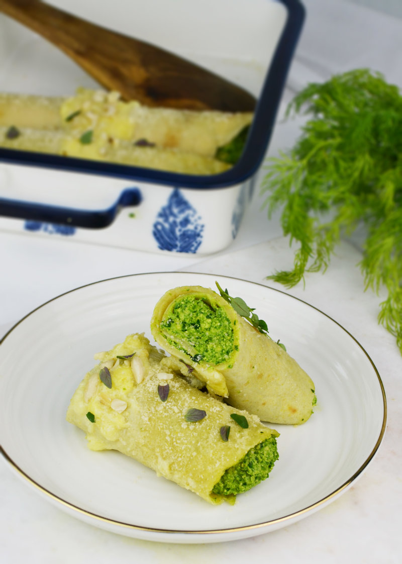 Le crespelle con spinaci e noci è una di quelle ricette che chi vuole perdere peso eviterebbe immediatamente, ma che in realtà è particolarmente leggera e genuina. Seguire una dieta può essere spesso difficile e può portare ad odiare anche i momenti più piacevoli della giornata, ovvero quelli in cui si si può sedere a tavola, rilassarsi e godersi un ottimo piatto. Questo accade quando c’è poca informazione, perché sano non deve essere necessariamente sinonimo di disgustoso ed è triste che la maggior parte delle persone lo pensi. Il segreto è seguire sempre un’alimentazione equilibrata ed imparare i piccoli segreti della cucina, in modo tale da preparare piatti poveri di calorie, ma incredibilmente buoni. Queste crespelle sono un ottimo esempio, perché sono realizzate con una farina alternativa e un condimento semplice, a base di tofu e spinaci, il tutto ricoperto da una cremosa e leggera besciamella vegan.