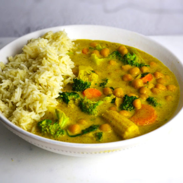 Amo particolarmente le spezie indiane e infatti spessissimo mi perdo nei negozietti etnici per fare scorta di ingredienti per le mie ricette vegane, come il curry di ceci e verdure che vi propongo oggi. Questo piatto è ottimo per una cena con ospiti, è la giusta soluzione per dare un sapore diverso alla nostra quotidianità, magari accompagnato da un ottimo calice di vino biologico. Io impazzisco per ricette come questa e le preparerei continuamente, perché il gusto del curry, piacevole ed intenso, rende irresistibili le verdure e il riso basmati, aggiunto come contorno.