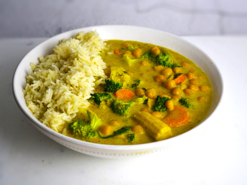 Inoltre, questo piatto è un’esplosione di genuinità, perché è un mix di ingredienti ricchi di benefici, per esempio: il curry ha proprietà digestive e antinfiammatorie; i ceci sono ricchi di proteine, hanno un buon contenuto di Omega 3 e un’ottima quantità di fibre; la zucca è in grado di rafforzare il sistema immunitario, ha proprietà diuretiche e contiene potassio, sostanza molto utile per chi pratica sport; i broccoli sono una fonte di ferro, utile per contrastare l’anemia, sono disintossicanti e possono rinforzare il sistema immunitario.