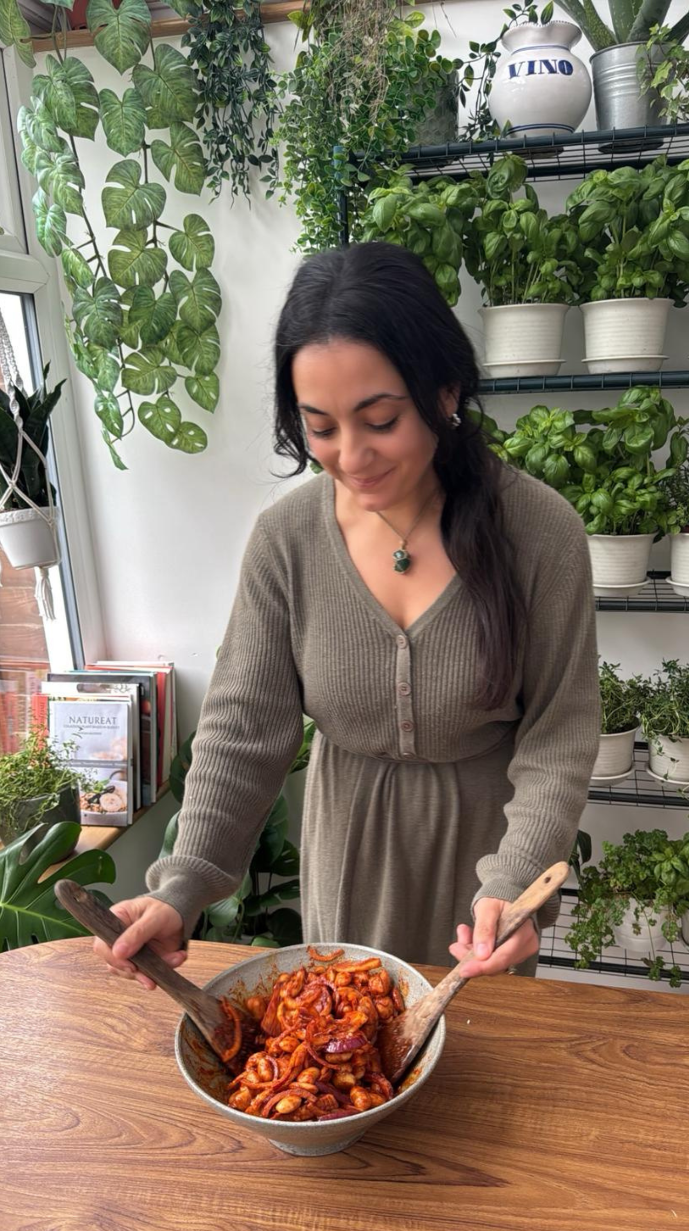 - Aggiungi paprika affumicata, sale, qualche goccia d’acqua e olio.