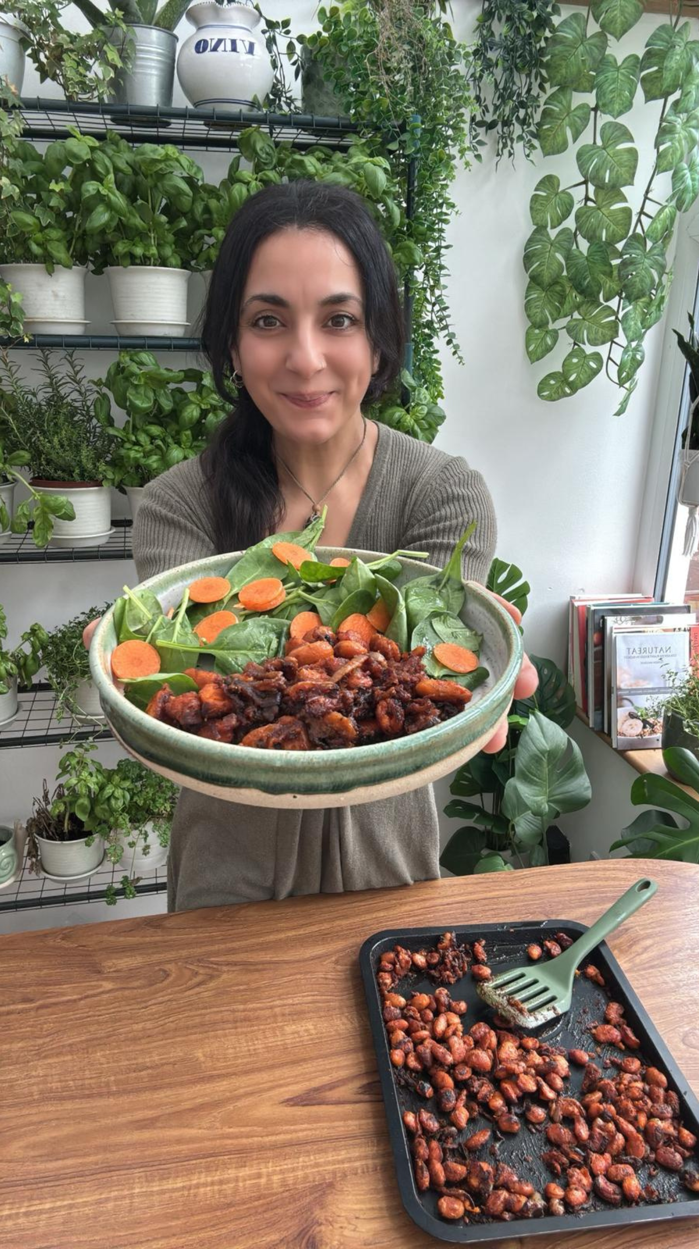 - Per rendere il piatto bilanciato ho servito con un' insalata di spianci e carote e del pane tostato.