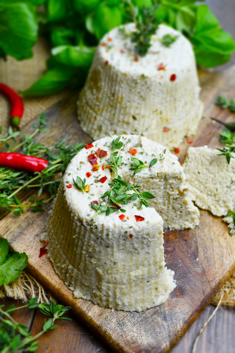 - Fallo riposare in frigo per tutta la notte. Separa il formaggio dalla formina. Spolvera la superficie con timo ed erba cipollina. Servi.