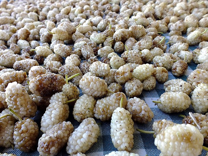 Somigliano alle more solo dalla forma più allungata e non uniforme, si trovano di diverse varietà, bianchi, neri e violacei, il periodo di maturazione è tra la fine di maggio e la prima metà di giugno.