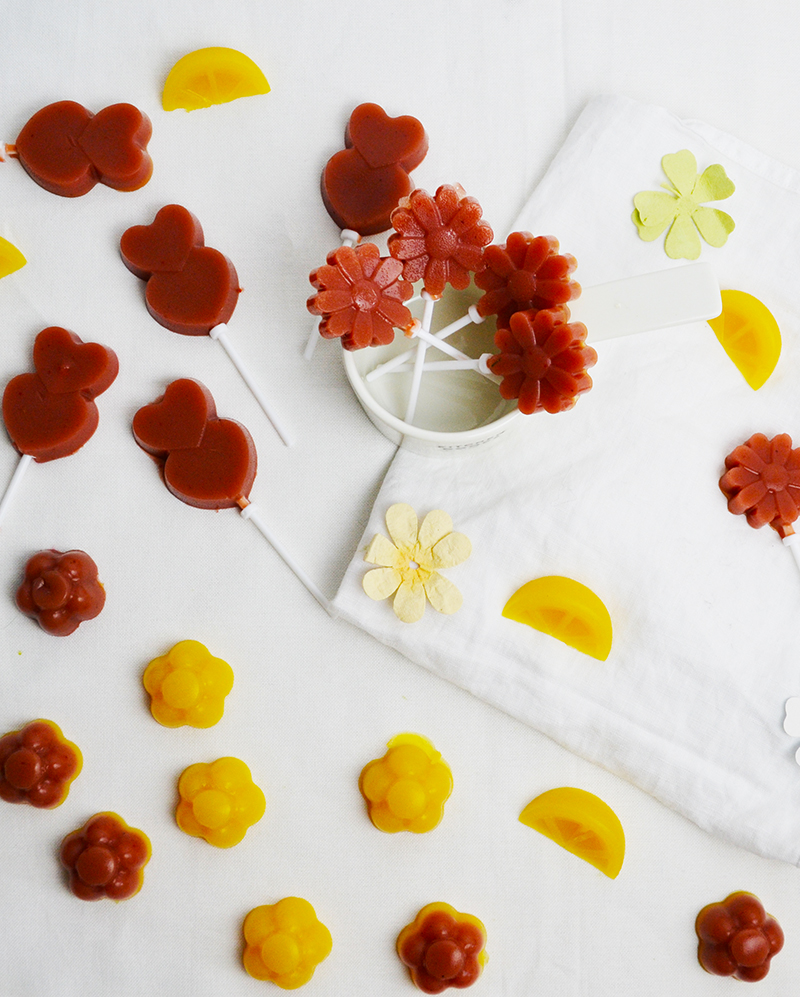 Queste caramelle gommose sono totalmente cruelty-free, super genuine perché preparate solamente con frutta fresca e rese dense con l’aggiunta di agar agar, un composto ottenuto dalle alghe rosse e con numerose proprietà: per esempio, è ricco di ferro e calcio, è povero di calorie e il contenuto di fibre migliora la digestione e regolarizza le funzioni intestinali.