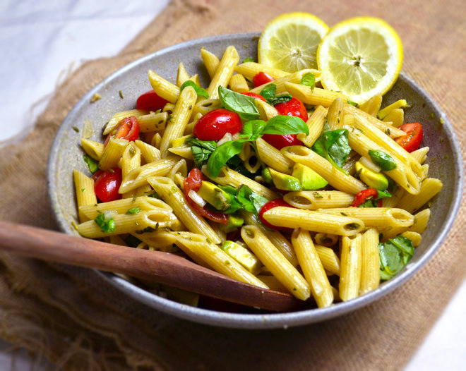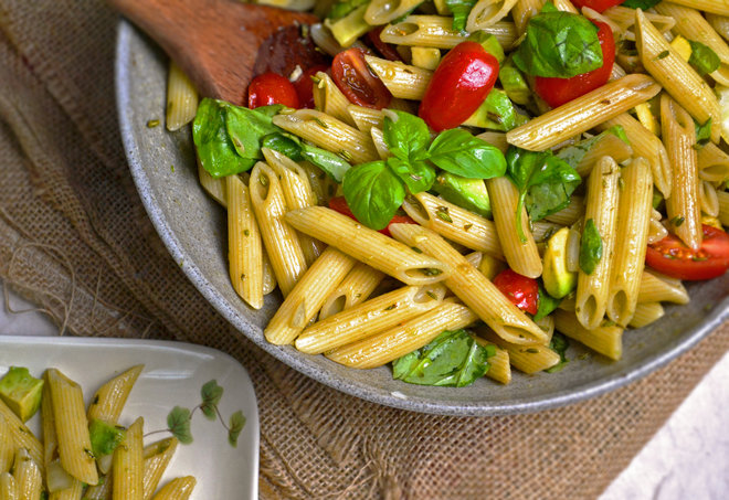 - Unite il condimento alla pasta, aggiungete l’ avocado e mescolate bene