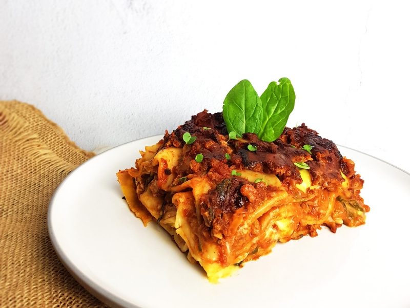 Lasagne con ragù di tempeh o funghi (Clicca qui per la ricetta)