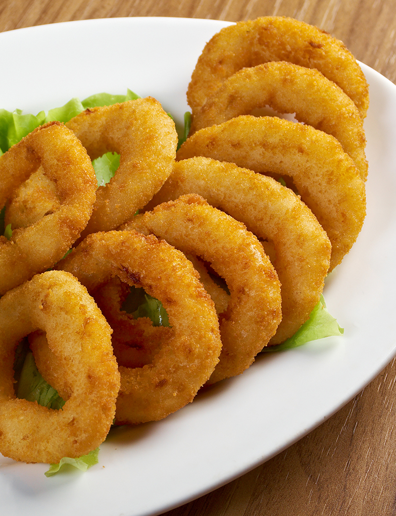 - Disponi gli anelli su una teglia rivestita da carta da forno, versa un filo di olio su ogni anello e cuoci in forno preriscaldato a 220° per circa 30 minuti o fino a quando si saranno ben dorati. In alternativa puoi friggerli in olio bollente.