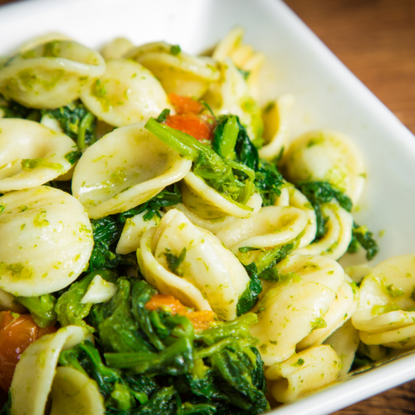 Le orecchiette con cime di rape sono una ricetta vegan che mi è particolarmente cara perché accompagna tantissimi ricordi della mia infanzia. Questo piatto, infatti, fa parte della tradizione culinaria della mia amata Puglia, mia nonna me lo preparava spesso, per questo per me ha un retrogusto di serenità e nostalgia. Ricordo che quando ero molto piccola mi ostinavo a non mangiare le cime di rape perché l’aspetto e il colore non mi sembravano particolarmente invitanti. Un giorno, però, mia nonna mi convinse ad assaggiarne un boccone e da allora non sono più mancata a tavola durante la stagione, rigorosamente servite con pasta fatta in casa.