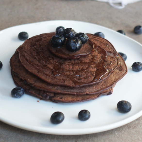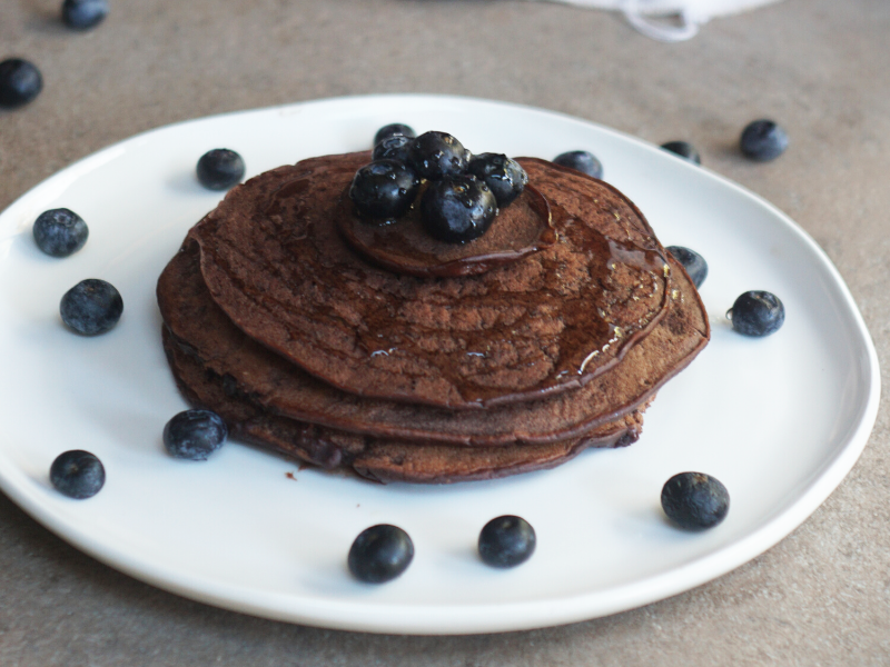 - Riscalda una padella antiaderente o leggermente oliata e versa l’impasto con l’aiuto di un cucchiaio, in modo tale da formare dei pancake. Cuoci per 3-4 minuti da un lato o fino a quando la superficie sarà ben cotta, poi gira e cuoci anche dall’altro lato fino a doratura. Servi con frutta fresca, sciroppo d’acero o creme spalmabile a scelta.