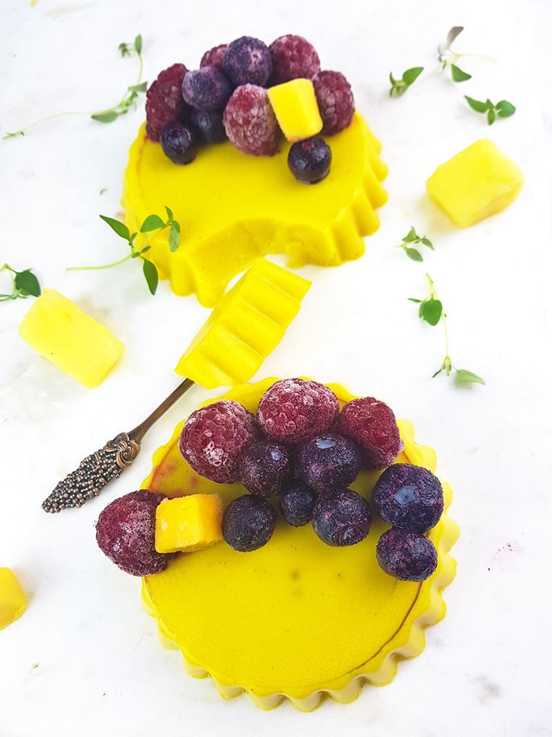 Per esempio, oggi mi sono svegliata con il ricordo di un dolce che amavo molto da bambina, ma che ormai non mangiavo da tempo: la panna cotta, un budino ottenuto dall’unione di zucchero, panna, latte e colla di pesce. Ho sostituito questi ingredienti con latte vegetale, agar agar e curcuma: il risultato ottenuto è un dolce denso, profumato e saporito, con un leggero retrogusto di vaniglia, che ha soddisfatto particolarmente le mie aspettative.