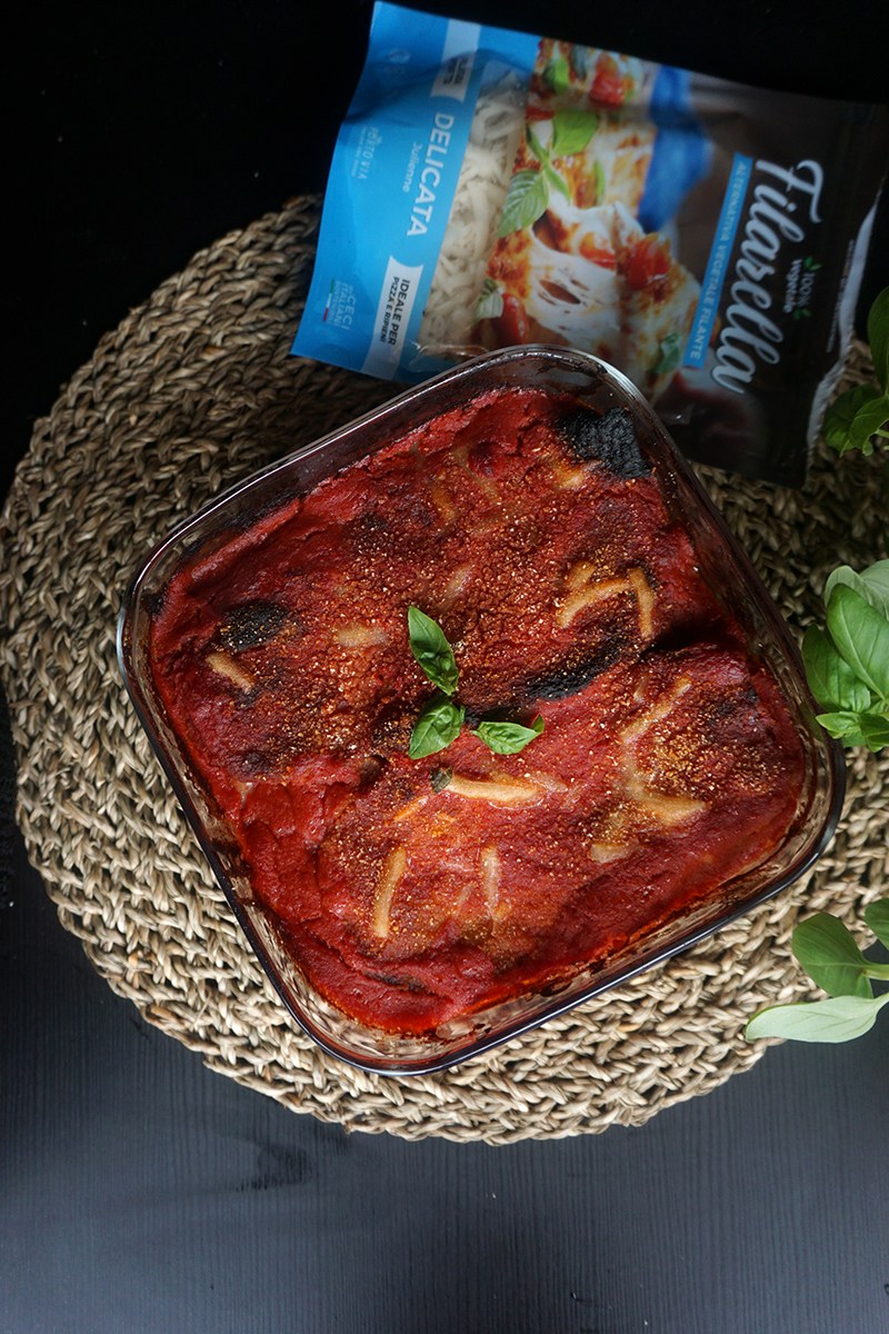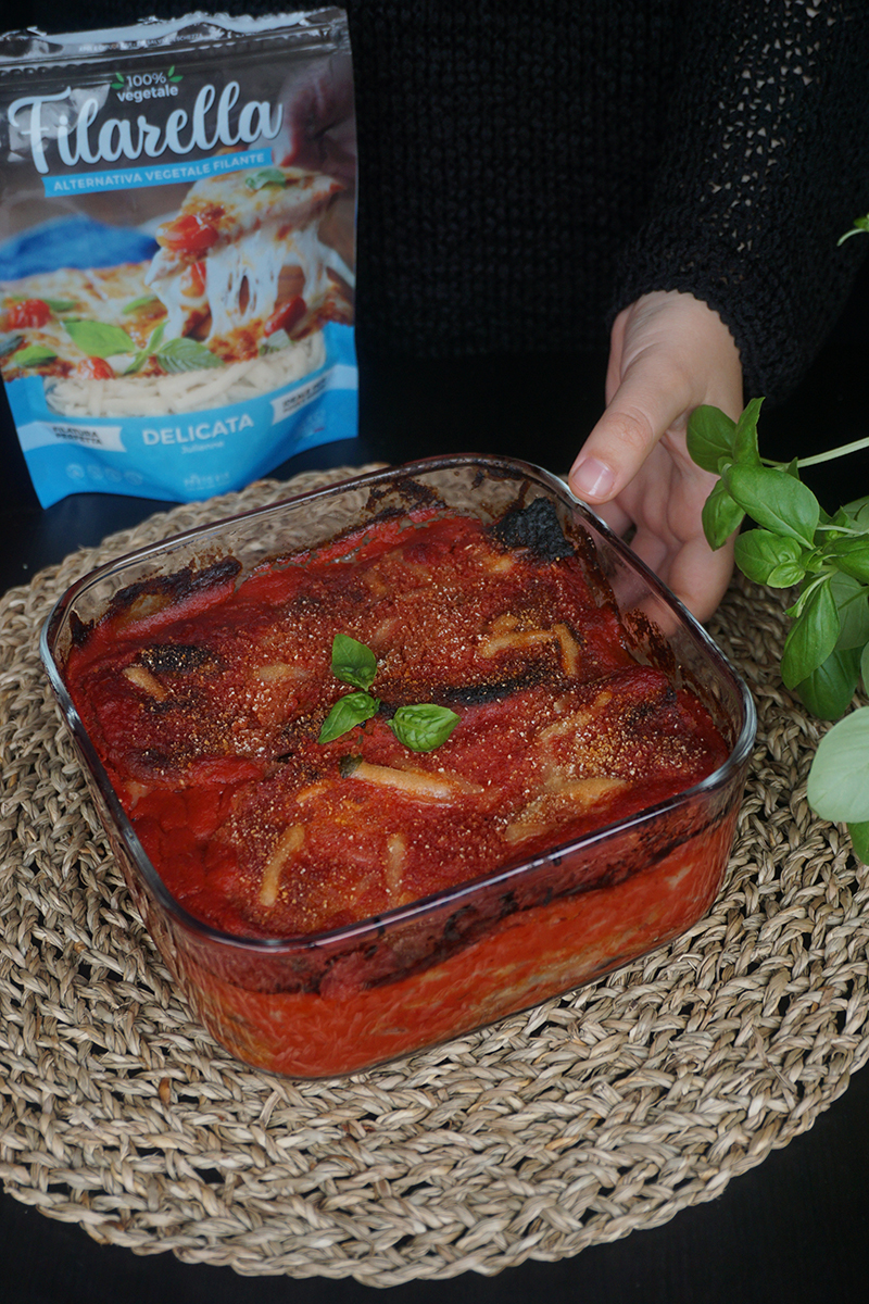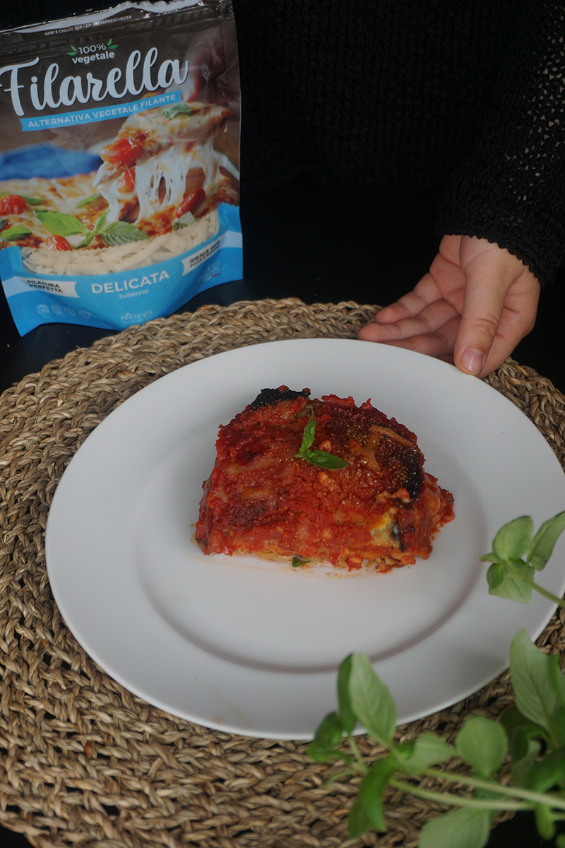 La parmigiana di melanzane è un piatto tipico della tradizione culinaria italiana, davvero sfizioso e facile da preparare, a base di melanzane, sugo, basilico e formaggio. Oggi, vi propongo la mia versione 100% vegetale, che, con l’aggiunta della Filarella di Porto Via, farà impazzire le vostre papille gustative per la sua semplice bontà.