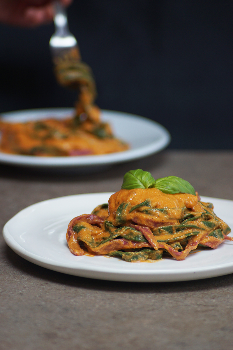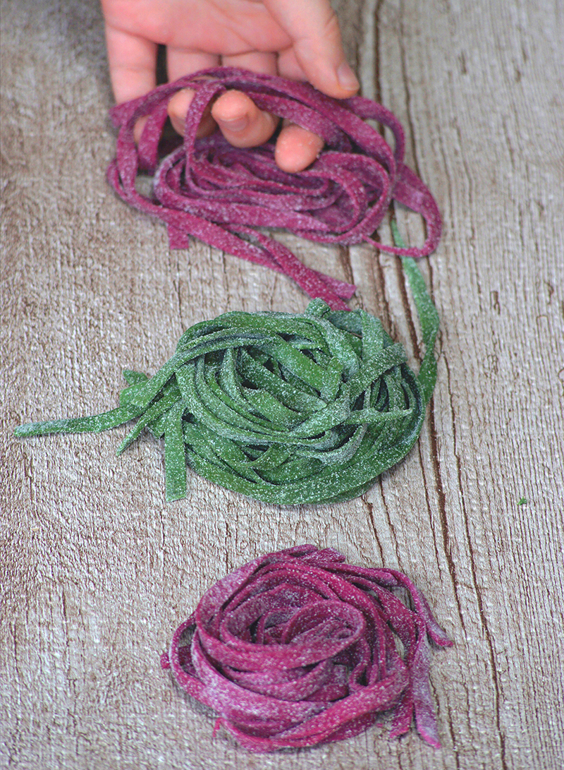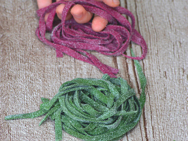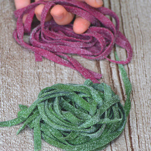In pochissime mosse possiamo aggiungere il gusto e i benefici di due ingredienti come gli spinaci e le barbabietole ad un piatto di pasta. Le barbabietole, infatti, hanno proprietà energetiche, disintossicanti e antiossidanti, in grado di apportare numerosi vantaggi all’organismo; gli spinaci sono ricchi di vitamine (per esempio, la vitamina A e C) e minerali (ferro, potassio, calcio…). L’assunzione di questi ingredienti all’interno dell’impasto non deve sostituire il loro consumo in altre preparazioni, ma è sicuramente un modo differente per realizzare una pasta fatta in casa bella da vedere e buona da mangiare.