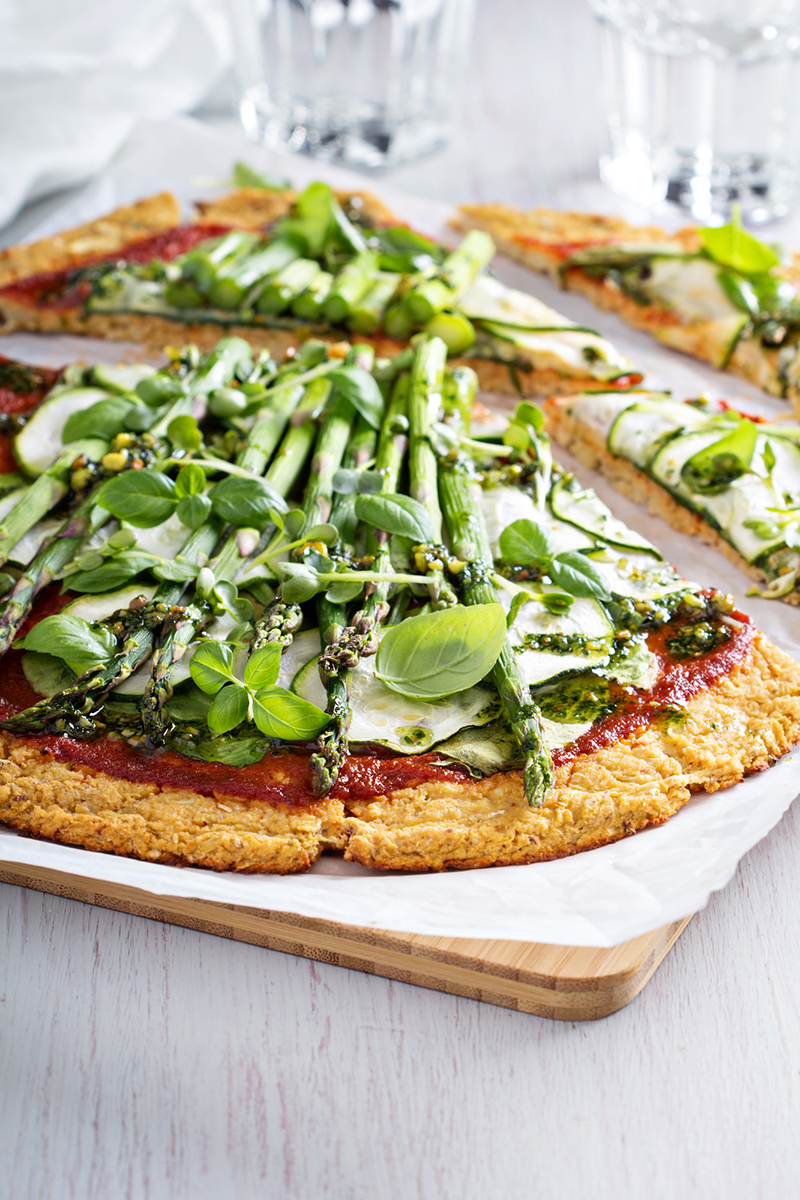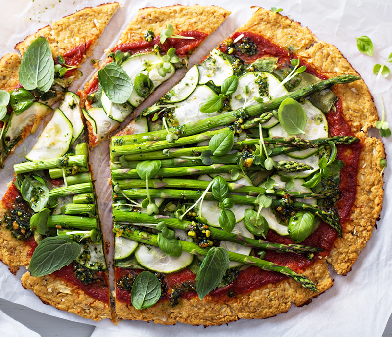 Molti affermano di non voler diventare vegani semplicemente perché non riuscirebbero a rinunciare alla pizza, ma in realtà esistono alternative come la pizza di cavolfiore farcita con asparagi e zucchine che sono altrettanto invitanti e gustose, se non addirittura di più!