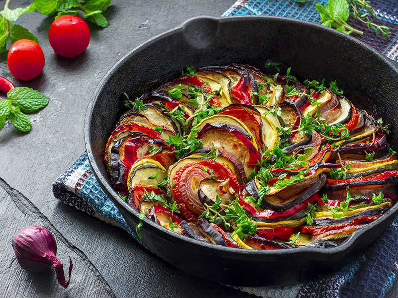 La Ratatouille al forno è un piatto della cucina francese che apprezzo particolarmente e che in passato era considerato semplicemente cibo per i contadini più poveri. In realtà, in questa ricetta più che povertà c’è tantissima prelibatezza: verdure cotte in un saporito sugo, a cui io amo aggiungere della besciamella vegan. I piatti come questo sono quelli che mi conquistano letteralmente perché sono l’apoteosi della semplicità e allo stesso tempo della bontà e genuinità che caratterizzano la cucina vegan, insegnandoci che è possibile mangiare cruelty-free e con gusto.