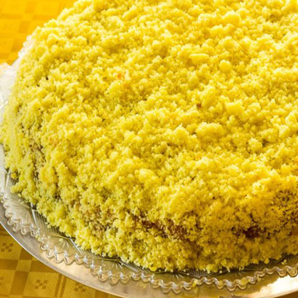 Per la festa della donna mia madre preparava sempre una buonissima torta mimosa, che io ho ricreato con una ricetta vegan e molto semplice. Sono cresciuta in campagna e tra le tante piante, ricordo che in questo periodo fioriva sempre l’albero di mimosa, con i suoi profumatissimi fiori gialli. Mio padre si svegliava presto e coglieva qualche ramo per mia madre, per me e per le mie sorelle, poi li trasferiva in un vaso e li lasciava sul tavolo in cucina, insieme ad un bigliettino con su scritto “per le mie donne”.