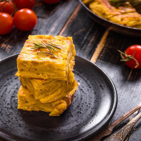 Tra i piatti tipici della tradizione culinaria spagnola, ce n’è uno molto semplice e gustoso: la Tortilla di Patate, ovvero una specie di frittata, preparata tradizionalmente con uova, patate e cipolla. Come ripeto in continuazione, io amo le patate e ogni scusa è buona per aggiungerle in una nuova ricetta, quindi, oggi preparerò la tortilla spagnola in versione vegan, con patate croccanti, cipolla dorata e una delicata pastella di farina di ceci che dona una consistenza morbida e compatta al piatto.