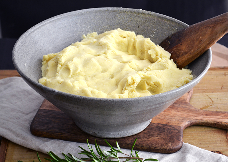 - Lascia raffreddare, poi incorpora la farina di riso, l' olio evo, il pepe e sale a piacere e mescola fino ad ottenere un impasto omogeneo e abbastanza denso da essere lavorato con le mani. (Se risulta troppo morbido, aggiungi altra farina).