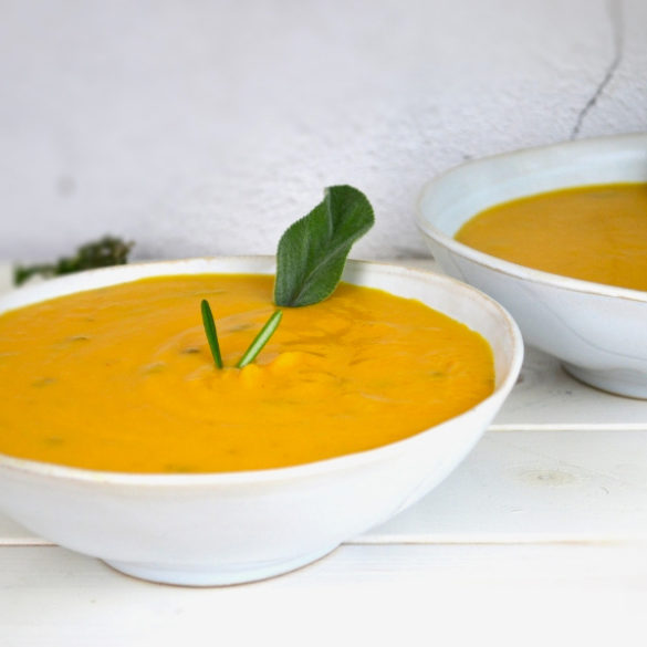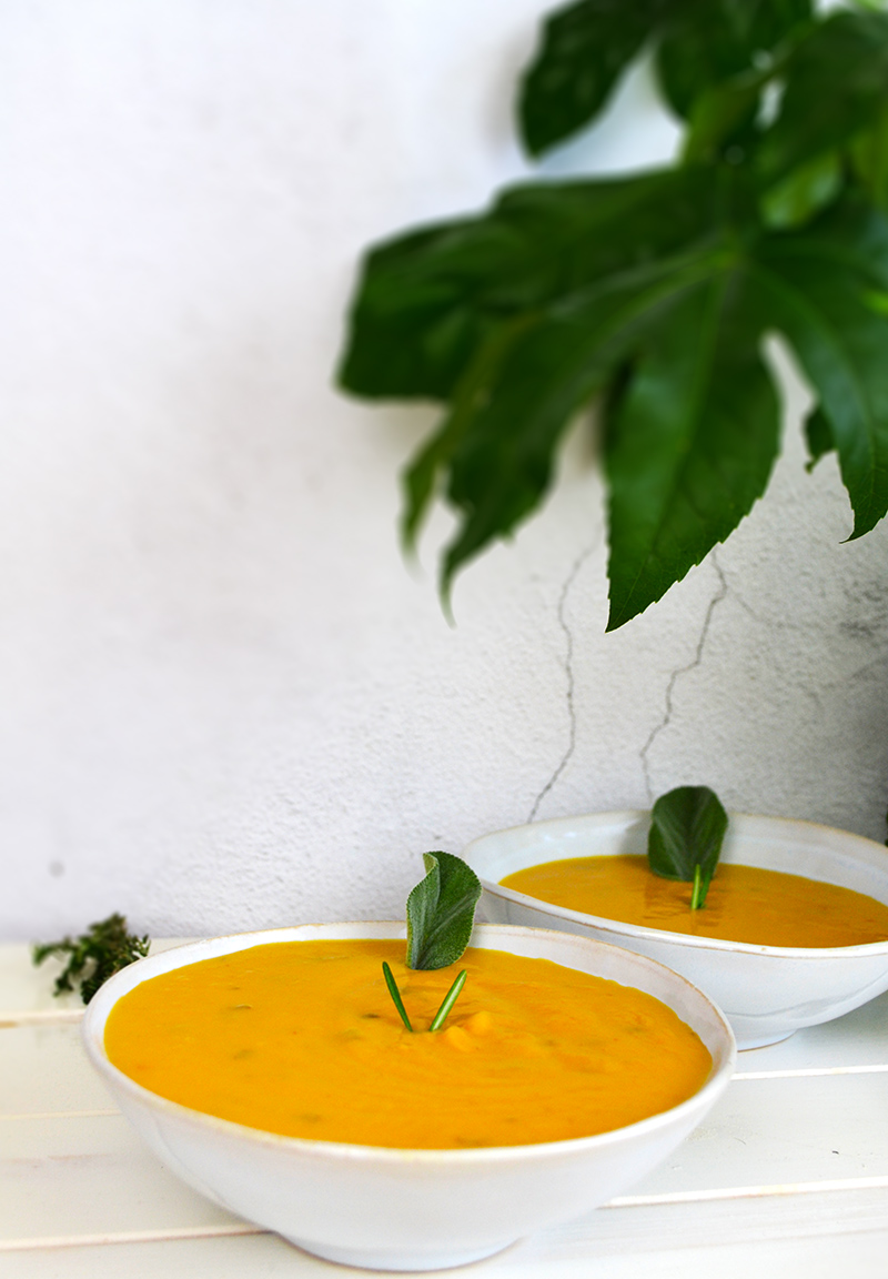 - Spegni la fiamma, frulla tutto con un mixer ad immersione, fino ad ottenere una zuppa densa ed omogenea e servi calda.